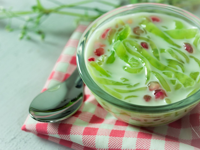 煎蕊(cendol)是一种由Pandan(斑斓)叶汁制成的绿色细条,有浓浓的青草味,它本来是马国印度人的著名甜点,现在的Pandan材料已改为天然的绿豆粉。吃的时候配上沙冰,淋上特制的椰浆和黑糖,清新爽口。