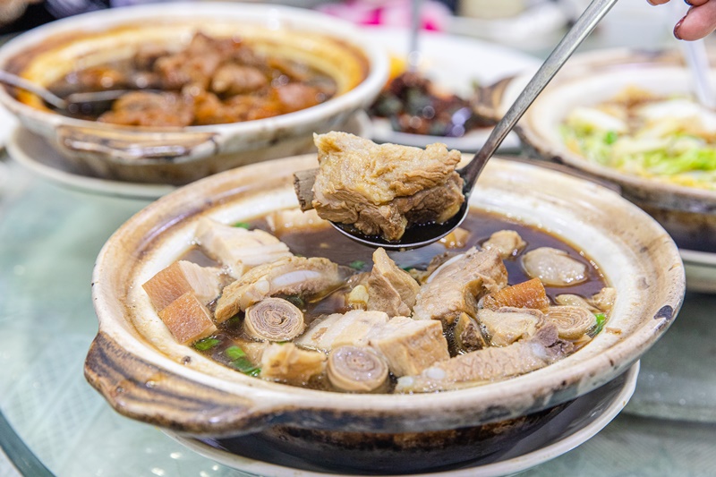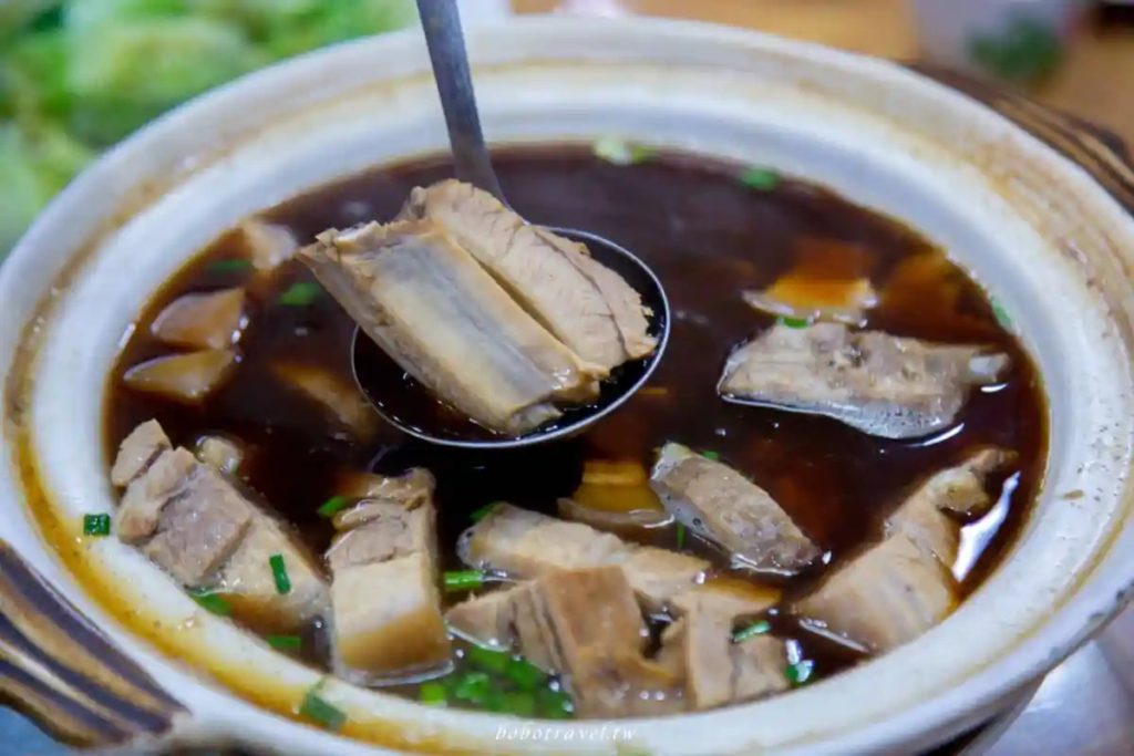肉骨茶混合中药(枸杞、党参、当归、玉竹、川芎)和香料(包括八角茴香、桂皮、丁香、大蒜、甘草、花椒、甘蔗、罗汉果、胡椒)及肉排熬制多个小时的浓汤。在马来西亚的一些高级餐馆会加入海参和鲍鱼一起熬制。肉骨茶通常伴白饭或以油条蘸汤来吃。以酱油、碎红椒和蒜蓉一起调味。通常会奉上中式浓茶解油腻。在马来西亚,肉骨茶是一道典型的早点菜式。