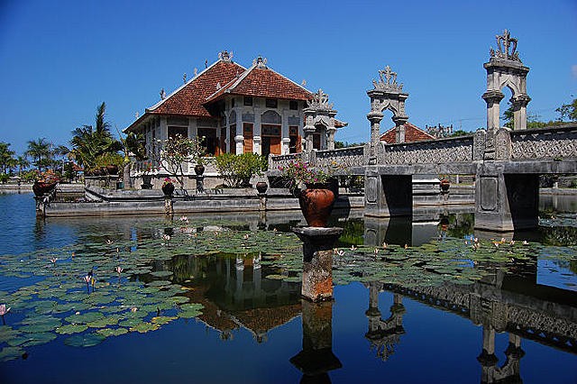 乌荣水皇宫(Taman Ujung),是1909年在卡朗阿森(Karangasem)国王统治下建造的度假公园,原名叫苏卡萨达公园(Taman Soekasada)。1963年,由于阿贡火山(Mount Agung )喷发,皇宫被摧毁、废弃,直到2003年,终于重建并向世人开放。