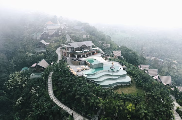 酒店有两个无边泳池,可以欣赏到巴厘岛中部连绵起伏的山丘和爪哇海的全景。不仅如此,由于酒店坐落在绝佳的自然环境中,这份美景是伴着鸟鸣和蟋蟀唱诗班的小夜曲,如同一个隐藏在丛林环绕的咖啡种植园中的世外桃源。