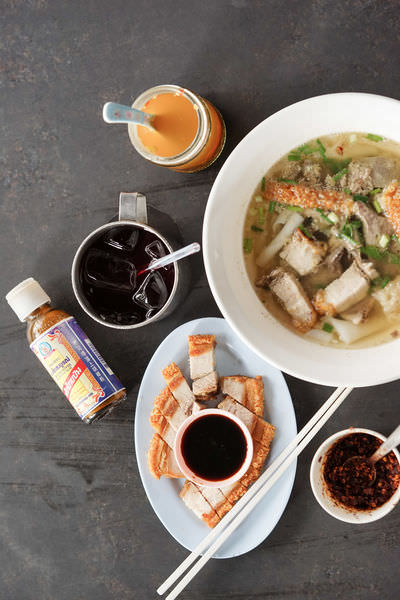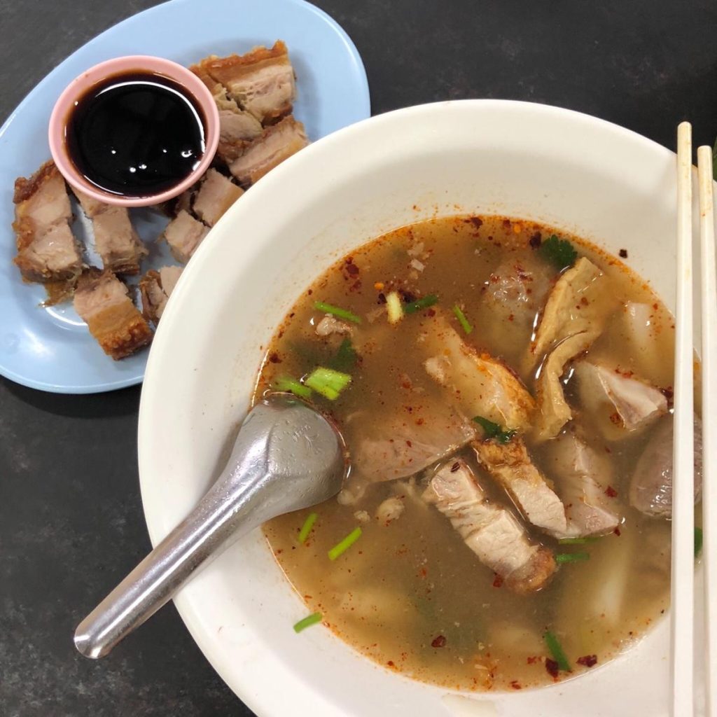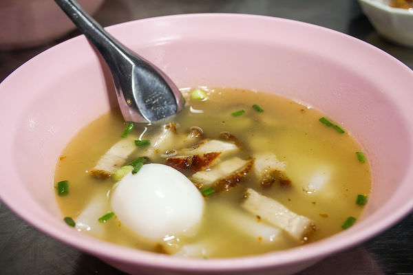猪骨猪内脏熬煮出的汤头温醇顺口,胡椒香气明显但不抢味,脆皮烧肉整体皮脆,肉质软嫩又带些肉汁,加颗蛋后让汤头与粿片更加平衡浓郁,尤其一定要点杯龙眼茶来搭配。