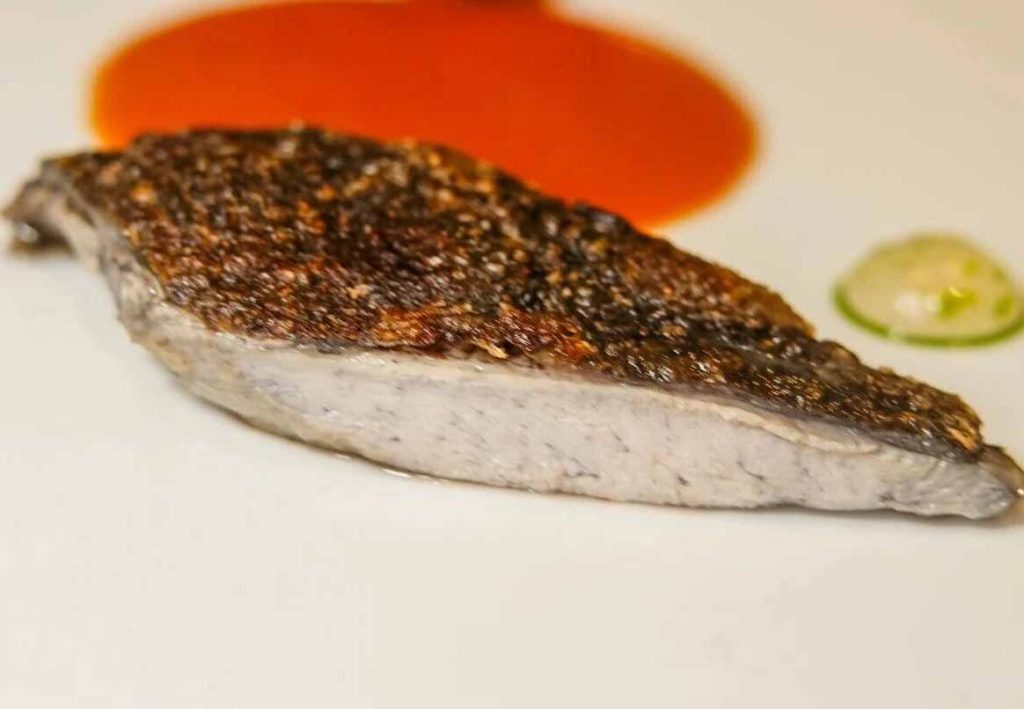 一道「咸鱼菜⼼」也很惊喜,马友鱼微微煎香,入口咸鲜,一梭梭的鱼肉相当鲜滑,上面还洒上了一堆白色粉末,你大概率猜不到是什么——是咸鱼粉!