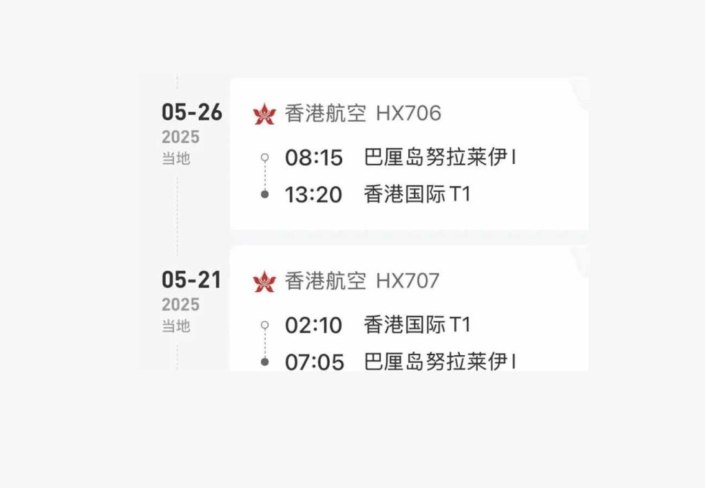 这套是我的年度神票,是Trip.com的大促抢票活动中抢到的,599港币含税含行李额香港往返巴厘岛,HX香港航空直飞,餐食和服务标准都和海航保持了一致,可以算是全服务航司。后来我计算了一下,599港币甚至不够这趟的税费,相当于是平台航司给你补贴了税费送你出行,而且还带20kg托运行李额,属于是很多人可遇不可求不可多得的超级好票了!