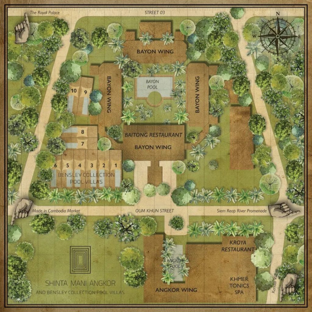 作为对原酒店的一次奢华延伸,吴哥圣塔玛尼在2017年开放了10栋泳池别墅,使这间酒店成为了「本斯利精选系列 The Bensley Collection」的首家旗舰物业;酒店如今整合了三个部分,统一以暹粒吴哥圣塔玛尼之名对外营业,原先的五星级精品酒店现称为吴哥翼 Angkor Wing,四星度假村改名为巴戎翼 Bayon Wing,再加上最新最顶级的本斯利精选泳池别墅 Bensley Collection Pool Villas,曾经不起眼的小旅馆,如今已蜕变成为暹粒最奢华的酒店之一…