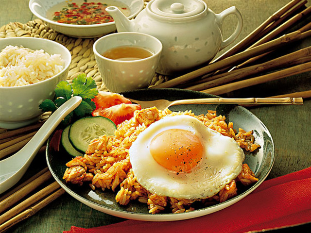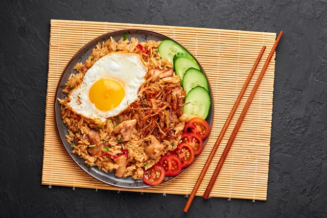 由米饭加上甜酱油(Kecap Manis)烹饪,甜酱油比我们常吃的酱油浓稠许多,口感是甜的。