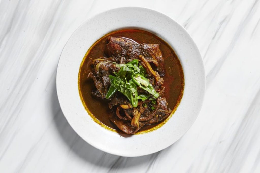 由鸡肉或牛肉切成小立方体,淋入辣酱油,其主要特点是厚黄汁制成米粉,拌内脏汤、姜黄、姜、大蒜、香菜、高良姜根、孜然、咖喱粉、盐等调料