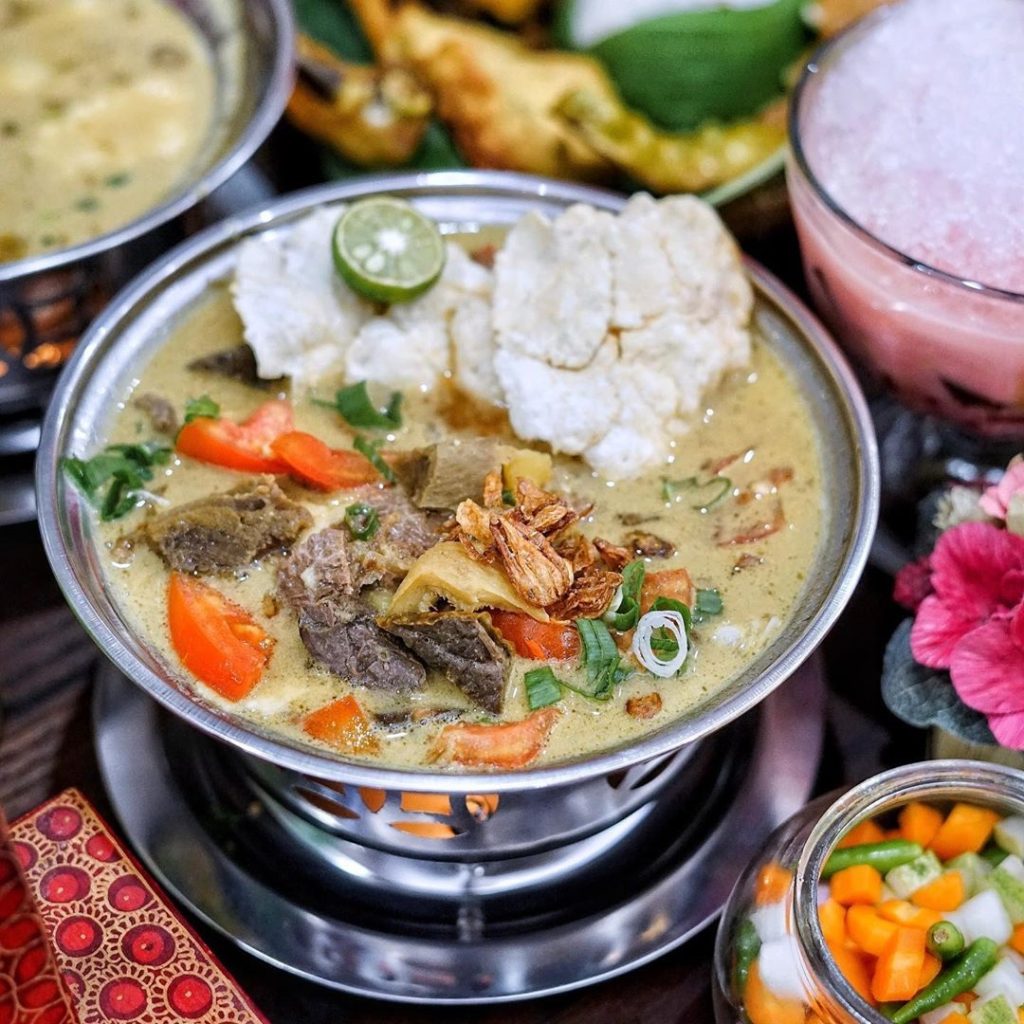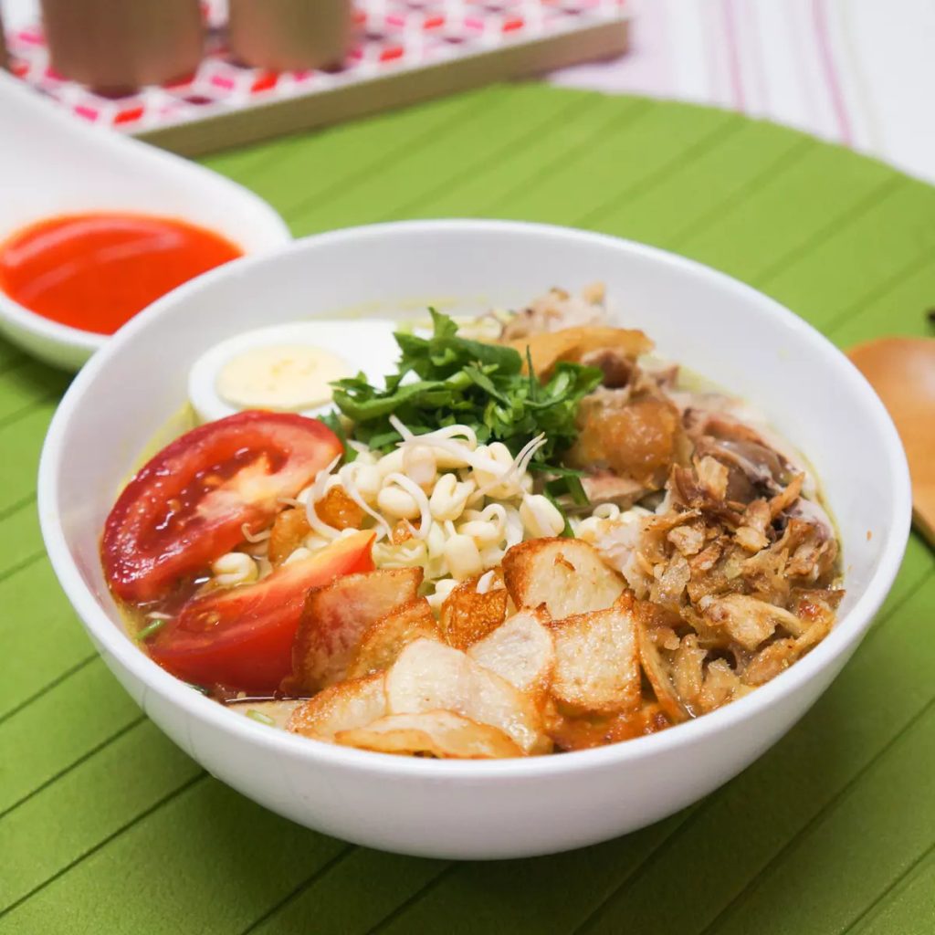 用鸡肉,配以黄色椰奶汤、虾片和蔬菜等原料熬成,富含多种印尼特有香料,喝起来,鸡肉的柔嫩叠加各种香料的浓稠层次,绝对一口入魂。