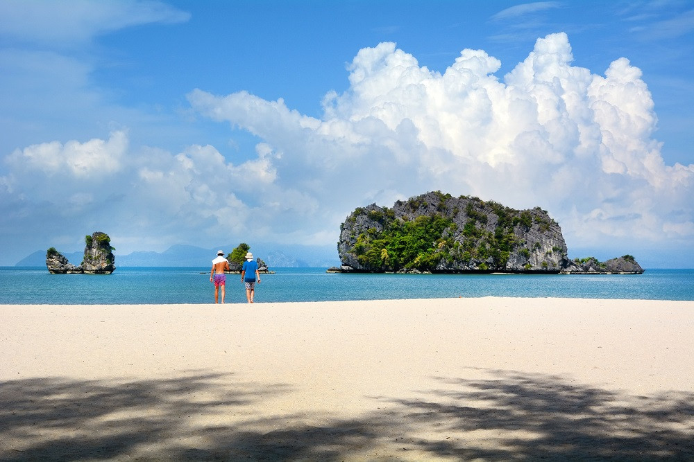 丹绒鲁海滩坐落于丹绒鲁海滩,位于兰卡威的北端,是兰卡威最美的海滩,和兰卡威的每一处海滩一样,丹绒鲁也有美丽的沙滩和清澈的海水,只不过不同的是,与其他海滩相比,这里游人稀少清静。退潮时丹绒鲁和附近几座迷人的小岛就连成一片,沙滩变成绵软的白沙堆般,可以步行过海上岛,拍上独特的照片。
