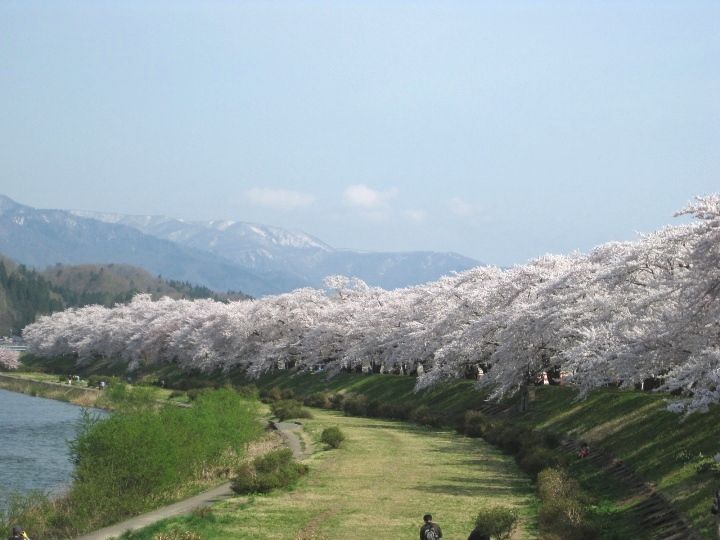 沿着缓缓流淌的桧内川,左岸长约2公里的范围内种满了美丽的樱花树,这是1934年町民为庆祝第125代天皇的诞生种下的,现已被指定为国家名胜。