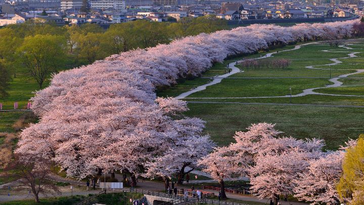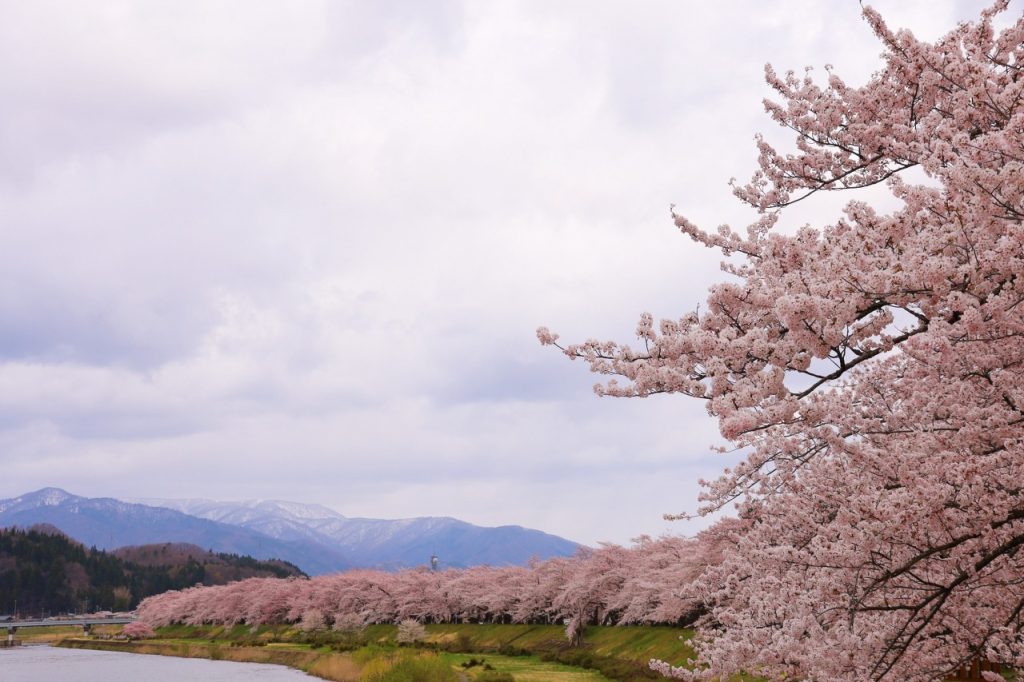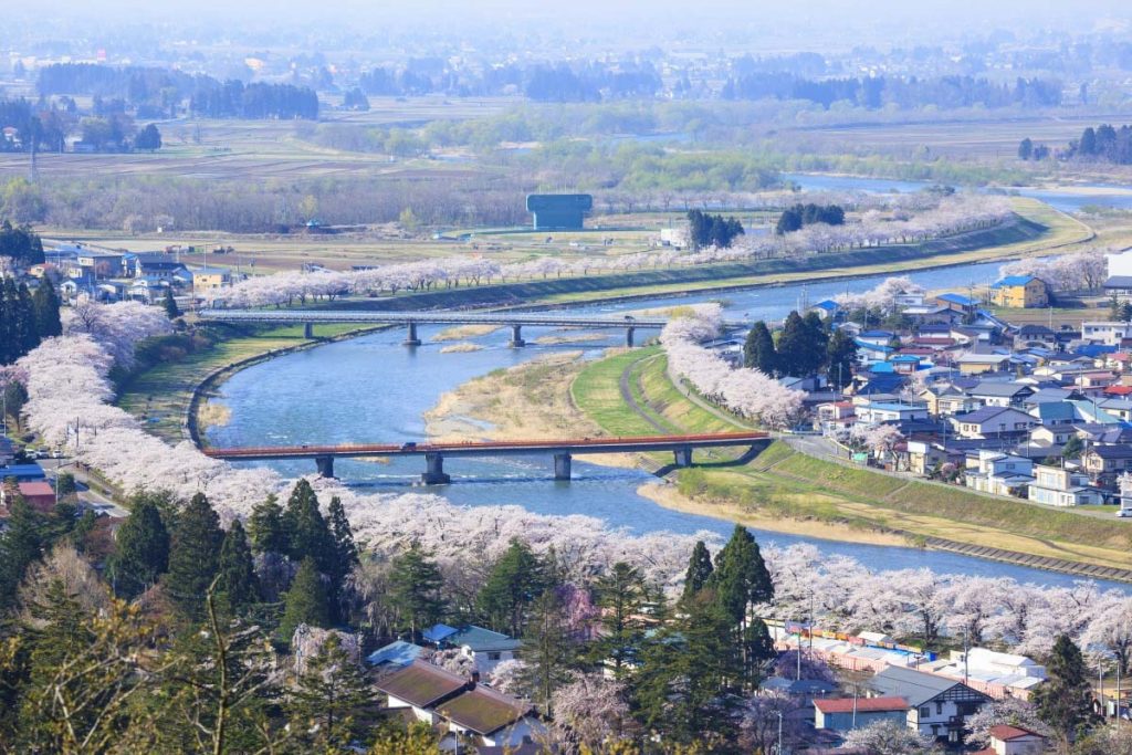 北上展胜地位于平静流淌的北上川河畔,被誉为东北地区最佳赏樱胜地之一,并被列入日本“赏樱胜地百选”和“陆奥三大赏樱胜地” 。