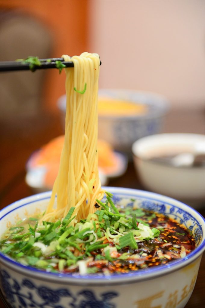 马安军辣子牛肉面的辣椒油是细粉状的辣椒面制成,且不含芝麻,比一般的兰州牛肉面辣的多,我觉得马安军的面条非常筋道,辣椒也火爆,但是差点清汤牛肉面的感觉,不算是传统兰州牛肉面,而是改良版的,但是很受欢迎。