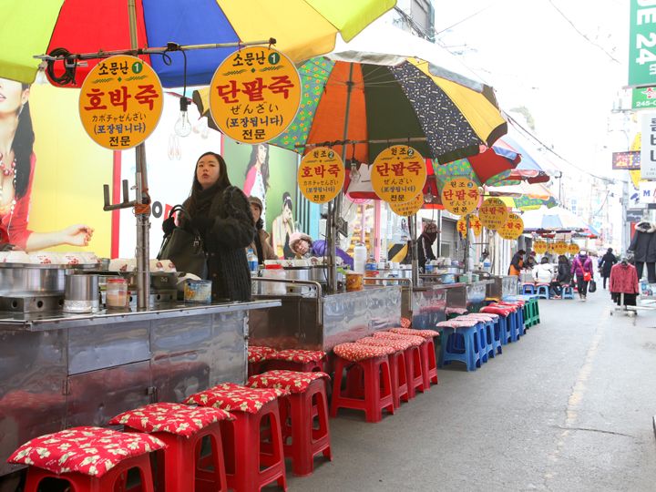可以看见卖釜山名物的店铺、青年购物中心、电视上播出的美食店等各种店铺。进入国际市场后一定要吃坚果糖饼和萝卜炒年糕!啊,当然也不能少了釜山鱼饼!