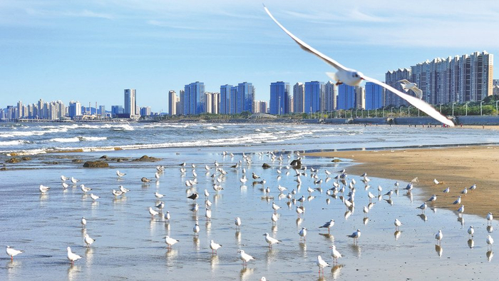 6. 喂海鸥:海岸边全是海鸥,也没有必要专门花钱去坐船喂。早上剩下的面包,或者便利店买一个几块钱的面包带去撒一撒,海鸥自然就围过来了。沙滩边也有卖海鸥淀粉肠,一般都是10块钱