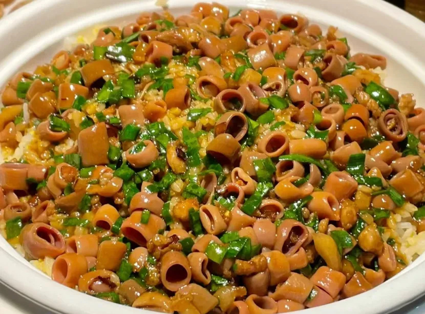 海肠捞饭也是烟台特色,当然开海之后,市场上会有海胆、虾、蛏子、生蚝等等等一些这辈子都没见过的海鲜可以尝尝