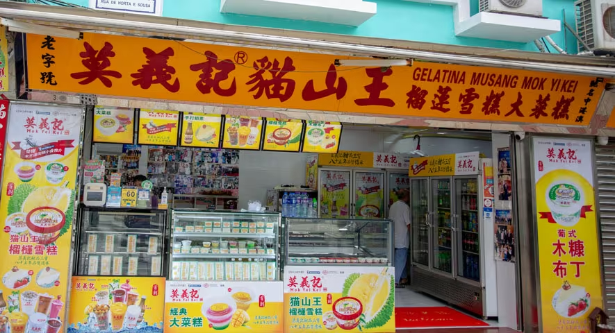 凼仔官也街上另一家人气小店,以甜品风靡一众食客,尤其是猫山王榴莲雪糕,采用新鲜榴莲肉制成,果香扑鼻,香浓软滑的滋味蔓延于唇齿间,让人一试难忘。还有口感爽滑的大菜糕,与葡式经典甜品木糠布甸同为该店的甜品三宝。