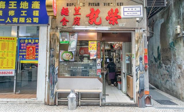 名胜大三巴牌坊的不远处,走进小巷,便来到这家豆香飘飘的小吃店。一锅锅由黄豆研磨而成的浓浆,化为豆腐花、豆奶等街知巷闻的豆品。以嫩滑见称的豆腐花,入口后豆香馥郁,伴随淡淡的姜汁味道,甜度适中不腻口。