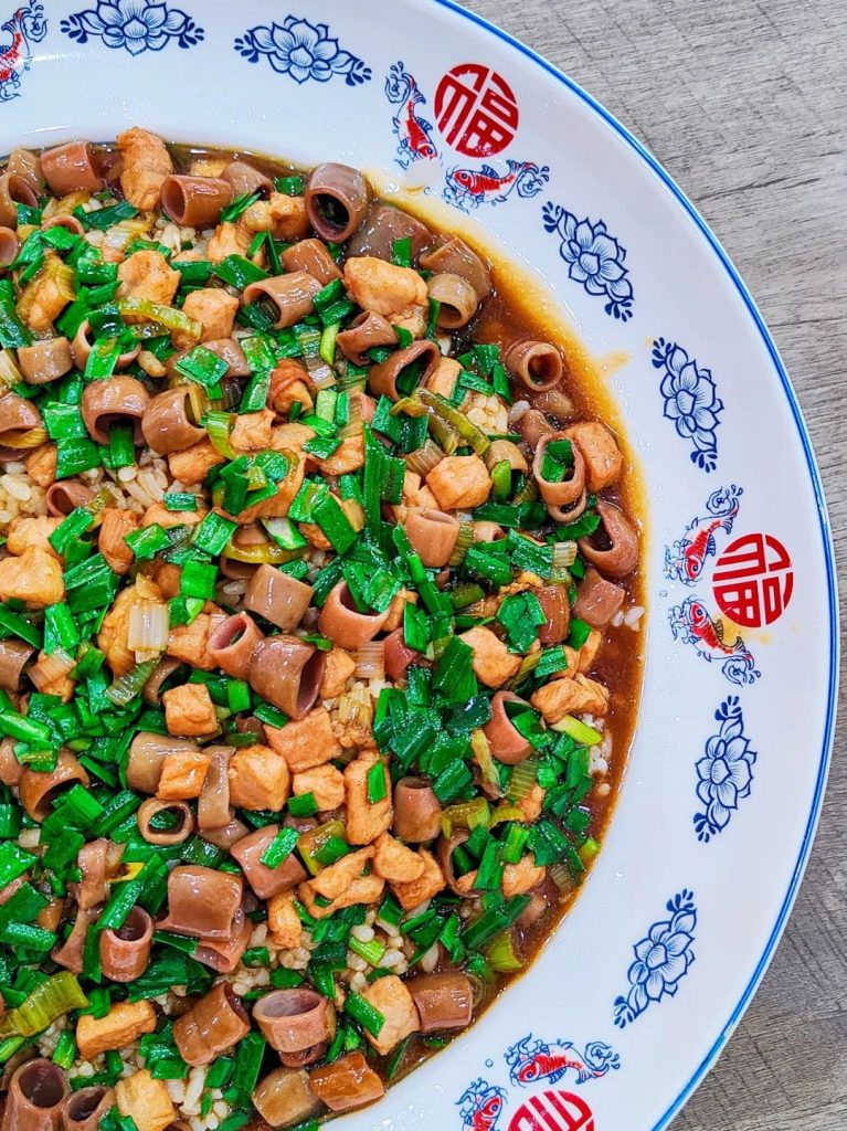 海肠捞饭是来烟必吃的特色美食之一,鲜嫩的海肠Q弹爽滑,搭配上点睛之笔韭菜和肉沫,浇入米饭中一起拌匀,挖上一大勺,口感鲜美脆爽,分分钟吃光盘~