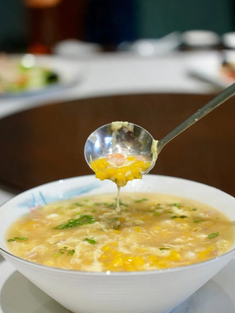 清汤鸡豆花,一款典型的吃鸡不见鸡的清淡系鸡茸菜肴。独到之处在于选用老母鸡清汤做为底汤烧开,下入鸡茸,小火慢炖至浮起呈豆花状即好,入口即化,汤色清澈透亮。
