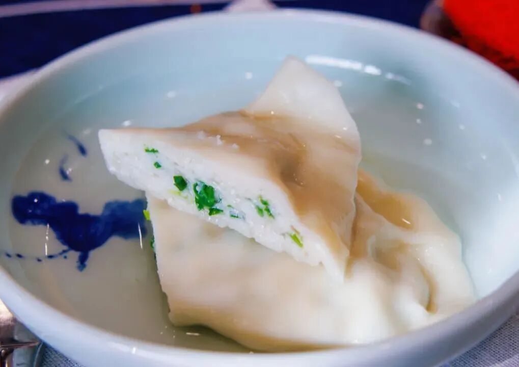烟台鲅鱼水饺以“大”闻名,是饺子界的“个头担当”。在馅料制作上也颇为讲究:选用新鲜的大鲅鱼取肉剁馅,加适量五花肉馅、韭菜顺时针搅动,这样搅出来的鲅鱼馅Q弹有力。热气腾腾的鲅鱼水饺上桌,轻轻咬开外皮,鲜美的汤汁四溢,白嫩弹滑的鱼肉在唇齿间迸发出香浓的滋味!