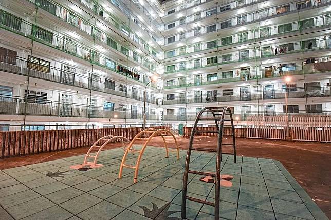 南山邨当中老街市上方的平台空地,有两个摆放着高低错落半圆弧形攀爬玩具的儿童游乐场,如果你姿势够多,可以拍到很棒的人像大片哦~