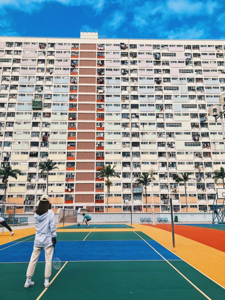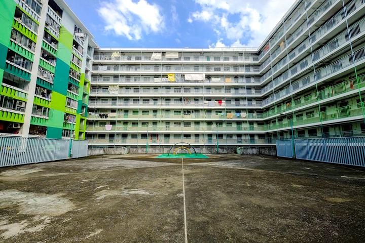 南山邨和彩虹邨一样,也是典型的香港公屋,1975年由香港政府兴建。南山邨主打绿色,颜色非常清新。