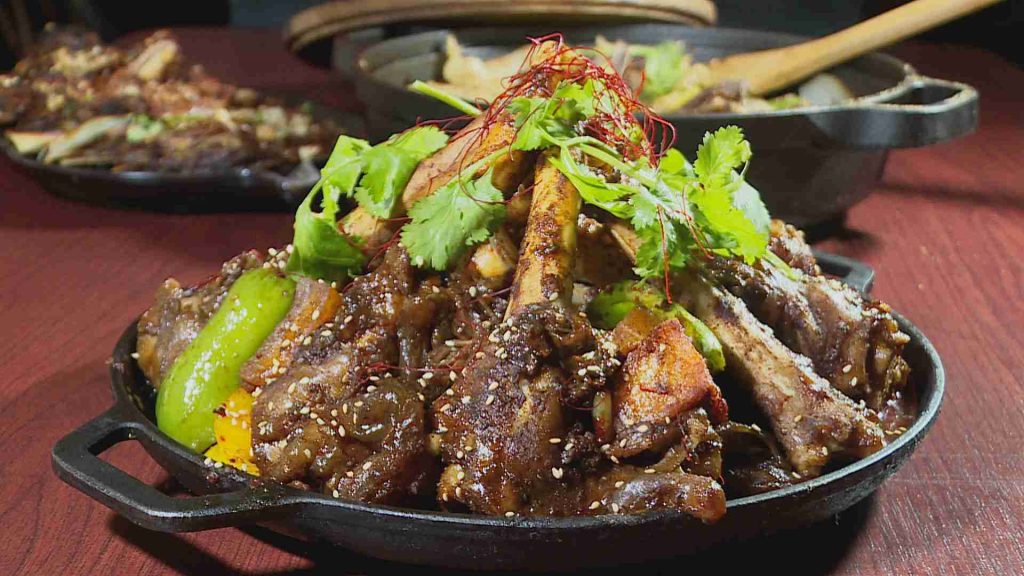 炕锅羊排分为生炕和熟炕,生炕是用鲜肉直接烹饪而成。羊肉味道较重,比较有嚼劲。熟炕则是用手抓白条二次烹饪而成,吃起来口感比较“亲切”。