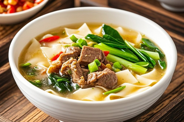 杂碎汤是青海地区的一道传统美食,通常作为早餐食用。它既能补身、耐饥,又能抗寒,深受当地人民的喜爱。主要原料是牛羊的头、心、肺、肠、胃、四蹄等“下水”。其制作过程较为复杂,首先将这些原料洗净煮熟,然后切成小块备用。接着,在锅中加入适量的水,放入切好的原料,加入调料(如盐、花椒、姜皮、荆芥等),用文火煮一段时间,让原料充分入味。最后,加入一些干葱丝、香菜等调味品,即可出锅。
