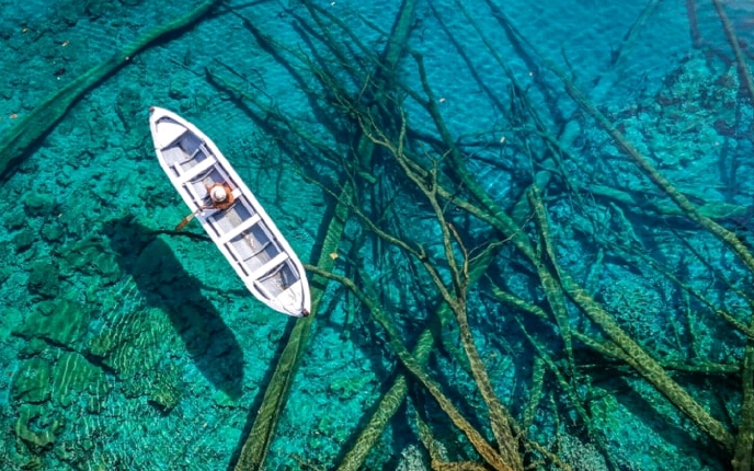 清澈的湖水如同镜子一样,湖中生物群清晰可见,也被称为镜湖(the Mirror Lake)。黑水湖水晶果冻般的水域令人沉醉,它在社交媒体上被誉为“印尼最蓝的湖”,也有人盛赞它是“世界上最干净的湖泊之一”。