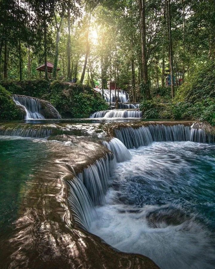瀑布缓慢地流过峭壁,周围环绕着茂密的热带植物,下方水池的舒缓声音如同一曲协奏曲。建议在雨季前往,欣赏水势猛的瀑布,但要做好潮湿天气的准备。