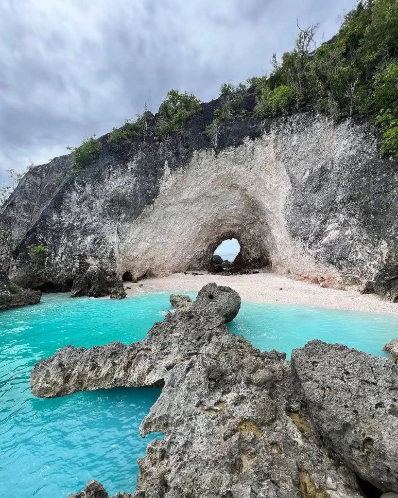 相比博甘达海滩的平静悠闲,丹戎甘杜尔海滩(Tanjung Gundul)则向你展示着大自然的鬼斧神工。它拥有独特的悬崖和地质构造,常年侵蚀形成了一座天然岩石拱门,透过拱门看去,有一眼万年之感,这也是这座海滩的标志。