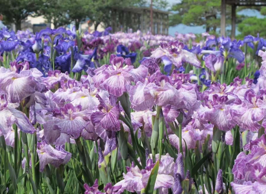 樱花过后,大村公园也是九州地区规模最大的花菖蒲园之一。初夏时节,从5月下旬开始,公园内的171种30万株花菖蒲竞相开放,呈现出一片色彩斑斓的景象。漫步在花海中,被缤纷的花朵所包围,感受到初夏的清新与生机,这种独特的风景线令人流连忘返,是一场视觉和心灵的盛宴。