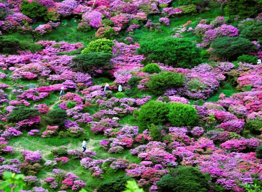 若想一览日本第一国立公园“云仙天草国立公园”的春日绝景,那云仙地区是不能不去的。在海拔超过1000米的云仙周边,从4月下旬开始的一个月左右,是一种名为“三山雾岛”的杜鹃花的最佳观赏期。整座山都会被染成鲜艳的粉色,色彩丰富而又生机盎然。