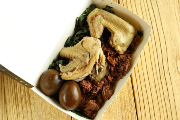 拉旺炖牛肉是泗水地区的特色美食之一,以其独特的香料和浓郁的汤汁而著称。这道菜选用牛肉与多种草药和香料一起炖煮而成,尤其是黑栗的加入,为炖肉提供了丰富口感和独特黑色。牛肉酥软入味,汤汁浓郁香醇,带有草药的独特风味和香气。