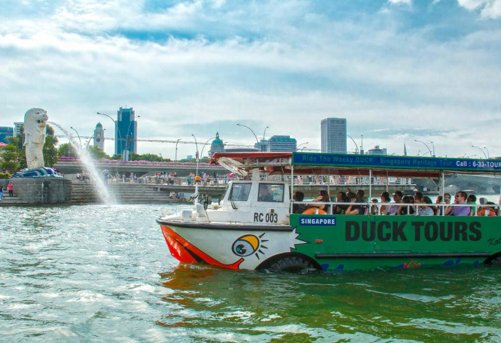 鸭子船之旅是新加坡的一项特色城市观光活动,特别适合带着小朋友一同体验。这种水陆两用的交通工具可以带领游客游览新加坡的主要景点,让游客们无需走路就能全方位地领略城市的风景。