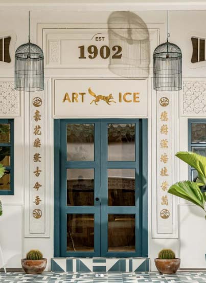 从外观上看,这家ART ICE店铺的蓝绿色门框、马赛克瓷砖和金色装饰就足以吸引人的注意。进入室内,你会被充满设计感的装饰所吸引。手工雕刻的墙面与阳光、绿植相结合,营造出一种摩洛哥异国风情的氛围。店内处处点缀着绘画和艺术品,每一处都别具一格,给人一种身临其境的艺术体验。