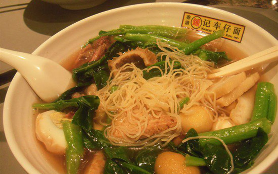 车仔面是香港的特色面食,最大的特点是可以自由选择食材。食客可以根据自己的喜好,在面条中加入鱼蛋、牛筋、猪皮、萝卜等各种配料,再搭配上不同口味的酱汁,如咖喱汁、沙茶酱、XO 酱等。车仔面的面条劲道有嚼劲,配料丰富多样,每一口都能带给你不同的惊喜,满足你的个性化需求。