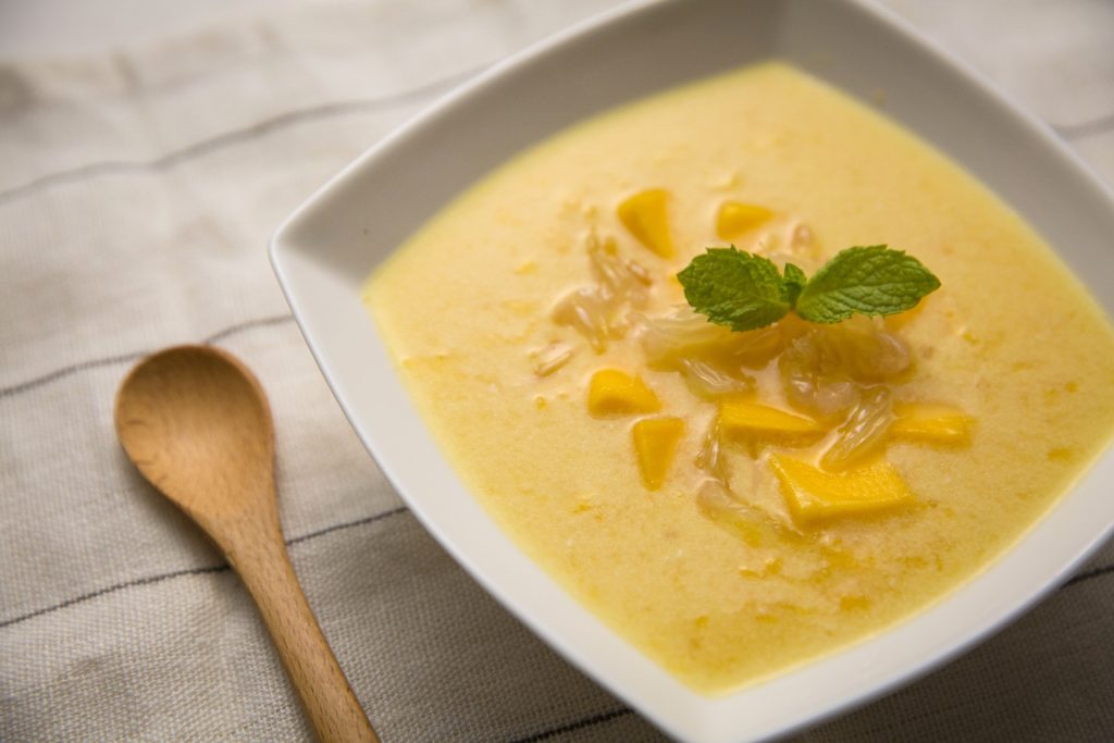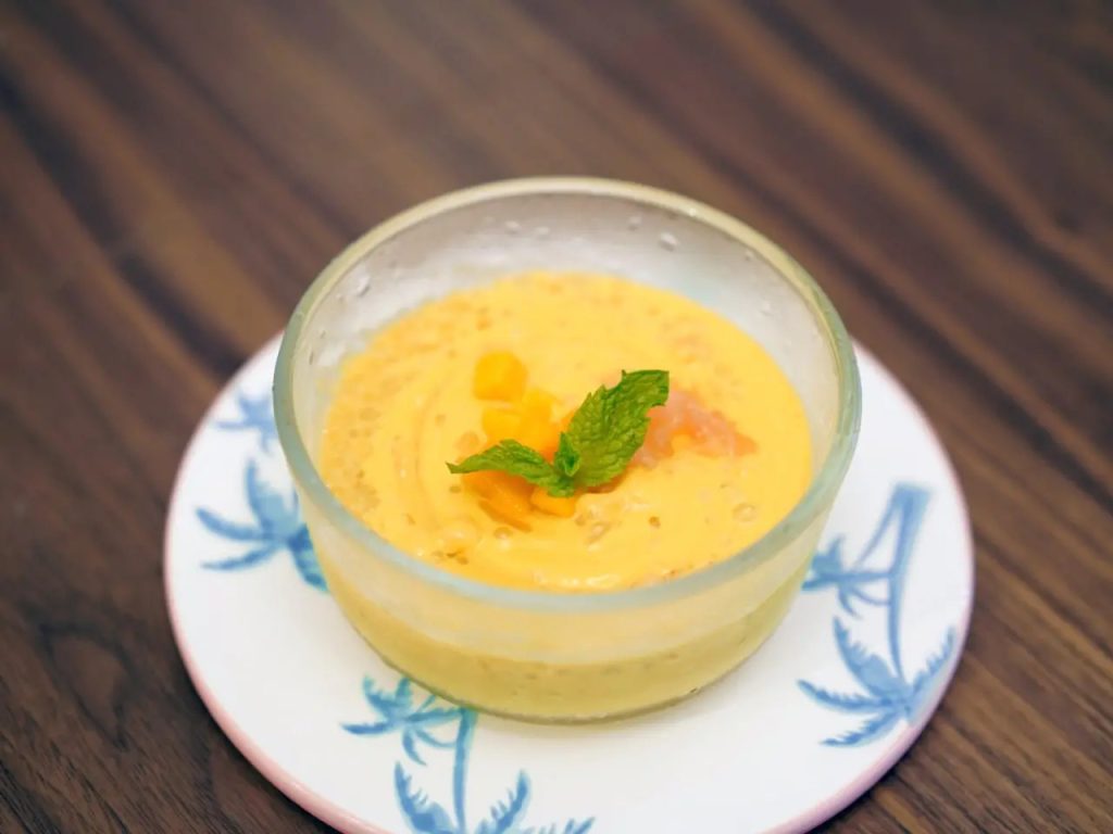 杨枝甘露是一道经典的港式甜品,以芒果、西米、西柚等为主要原料。芒果的香甜、西米的爽滑、西柚的微苦相互融合,口感丰富,层次分明。芒果打成细腻的果肉泥,与煮好的西米和新鲜的西柚果肉混合在一起,再加上香甜的椰浆,每一口都充满了浓郁的果香和椰香,清甜爽口,是夏日消暑的佳品。