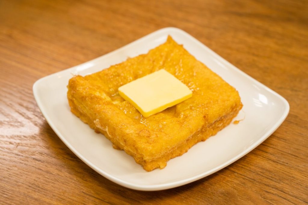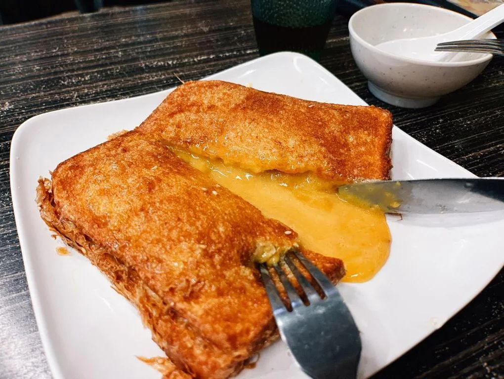西多士是一种港式三明治,将方包的四边切掉,中间夹上花生酱、奶油、火腿等馅料,然后蘸上蛋液,放入锅中煎至金黄色。西多士外皮酥脆,内部柔软,馅料香甜可口。吃的时候,可以搭配上一杯港式奶茶,享受悠闲的下午茶时光。