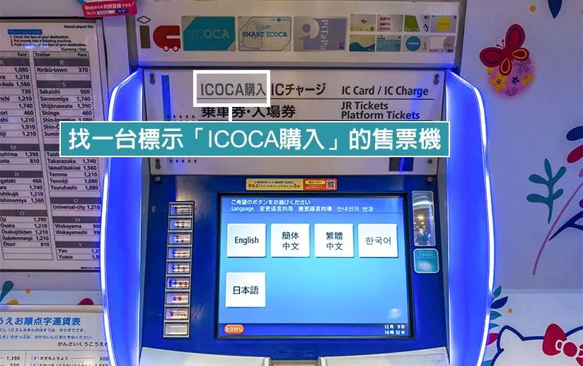 首先,到自动售票机选择「购买ICOCA」按钮。