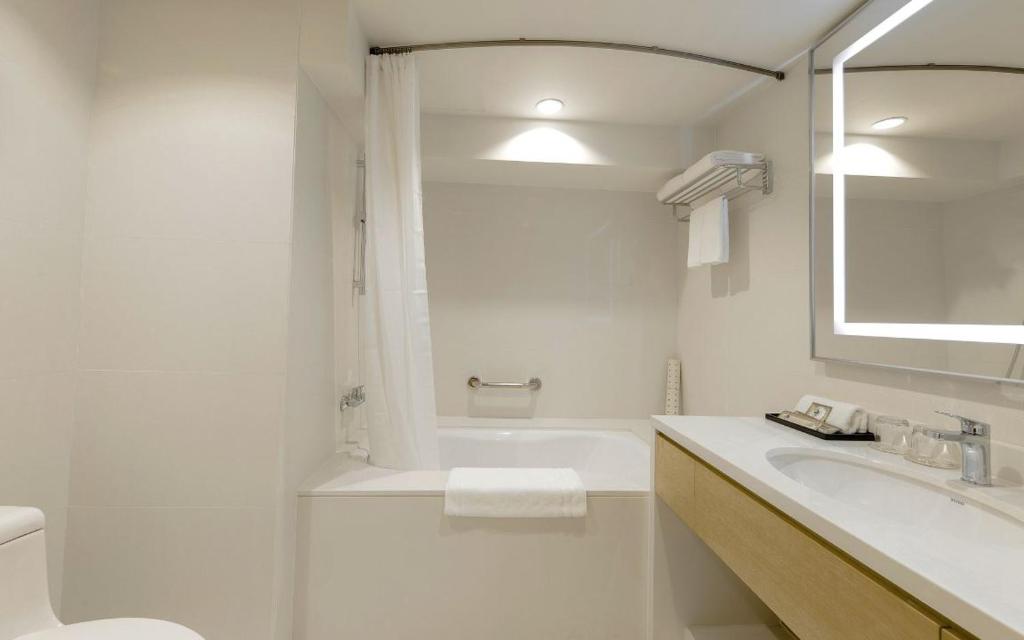 设施:酒店内设有多项设施,包括泳池、健身室和购物中心等。酒店的洗护用品使用的是欧舒丹品牌。