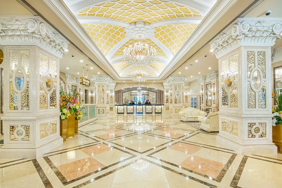 环境:酒店环境优雅豪华,充满欧洲风情。大堂宽敞明亮,装饰典雅,豪华大理石地板和高雅吊灯让人享受一流的入住体验。