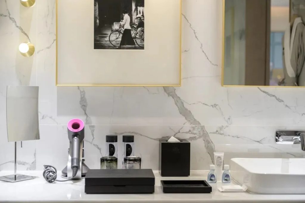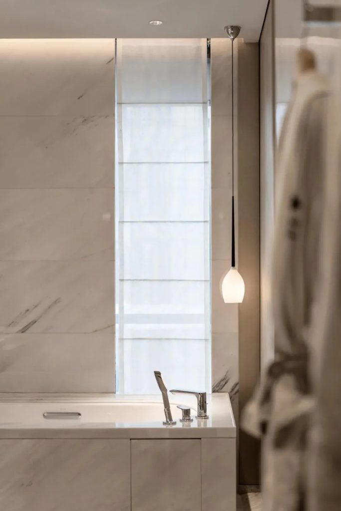空间内设有有一个巨大的圆形浴缸,泡一个舒服的澡,得到一种对生活莫名又舒适的抽离感。酒店备品选用的法国原装Maison Martin Margiela奢华定制洗护套装。