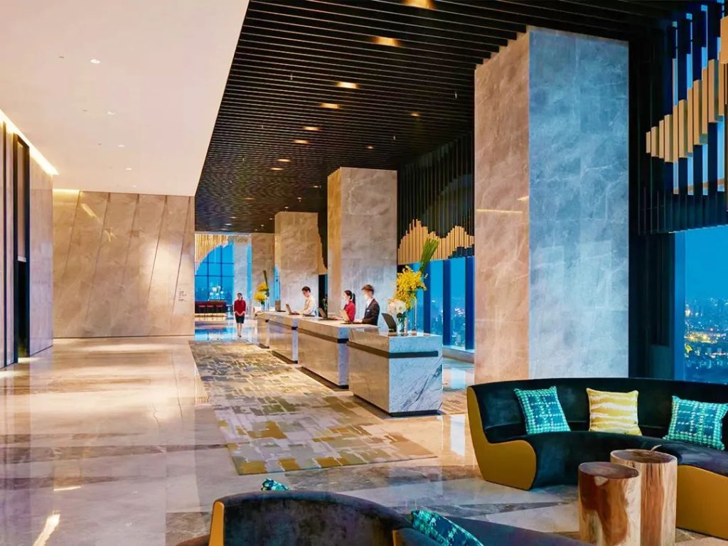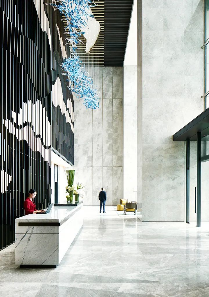 广州四季酒店位于全球十大超高摩天大厦之列的广州国际金融中心高层,进入70层高的天际大堂就被室内设计给震撼了。扶摇直上的大堂中庭气势宏伟;阳光透过层叠的玻璃幕墙照射的光斑灵动;背景墙的镂空设计,一切都那么的优雅而富有格调。
