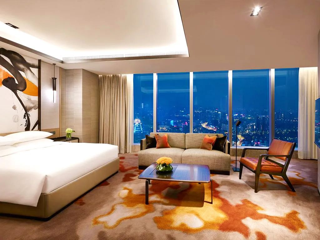 无锡苏宁凯悦地处市中心的苏宁广场北塔,客房及餐饮设施位于43-67层,紧邻国家4A旅游景区崇安寺街区,在各个方位均可观赏到无锡城市景观、蜿蜒的京杭大运河、太湖以及无锡天际线。