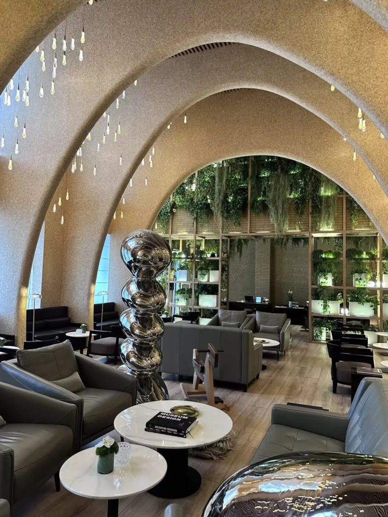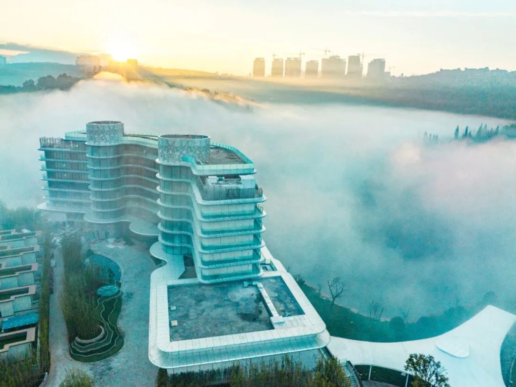 贵阳观山湖安珀酒店坐落于观山湖畔,本该依山傍水,风景如画,实则不然。打车至酒店楼下时,我被它“不扬”的外貌震惊了,原来,这不是一家传统意义的度假酒店,而是一件大隐隐于市的艺术品。