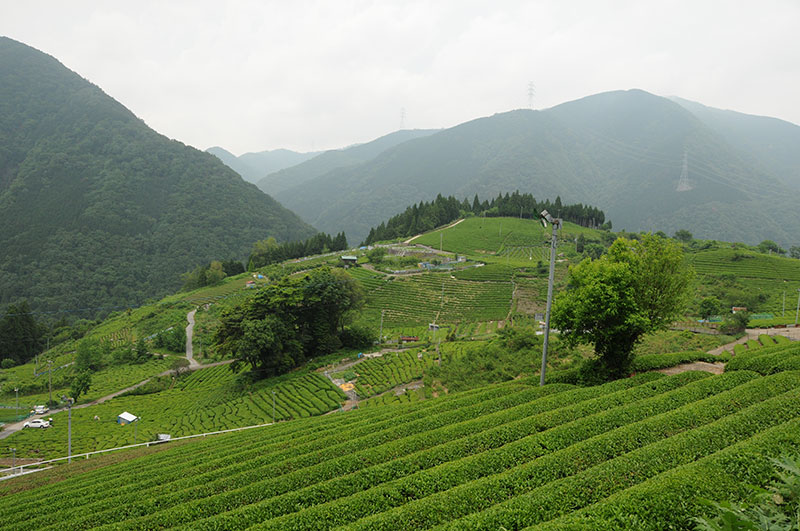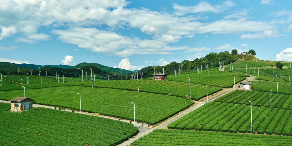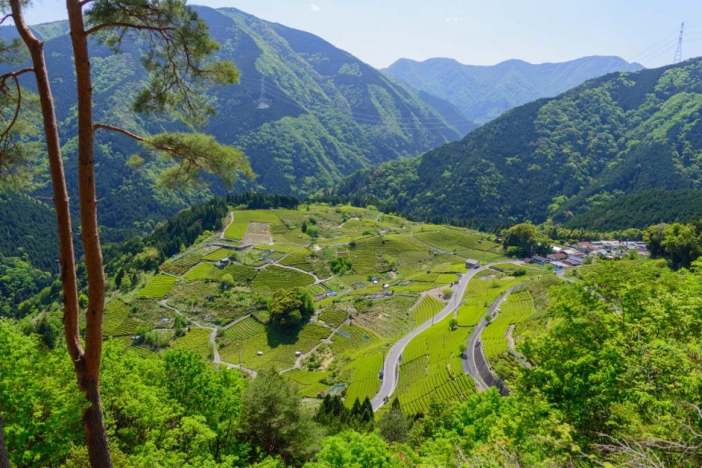 京都府南端,与奈良县交界处,有个叫和束町的地方,是宇治茶的主要产地。这片被称作“茶源之乡”的土地,茶树的栽培历史可以追溯到镰仓时代,广阔茶田连绵在陡峭山峦之上。2015年被正式认定为日本文化遗产,也是京都府第一号景观资产。这里的茶田各有特色:石寺茶田与新旧民居相融,撰原茶田的田垄像拼布画般错落有致,原山茶田呈环形分布。这里有很多特色咖啡馆,其中天空咖啡馆以京都高台寺茶室为设计灵感,从室内可将釜塚山茶田尽收眼底。