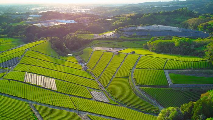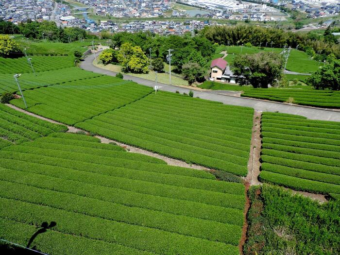 这是一处能同时饱览两个世界遗产的复合型茶田。从观景台望去,世界文化遗产韮山反射炉与富士山同框出现。这里不仅有连绵的茶田,还设有制茶工坊、土特产商店和精酿啤酒酿造厂。春秋两季,可以换上采茶女服装体验采茶,结束后还会获赠原创手帕和煎茶伴手礼,采摘的鲜叶也能带回家。在物产馆里,还能尝到煎茶和烘焙茶两种口味的冰淇淋,清爽甜味中交织着茶香。