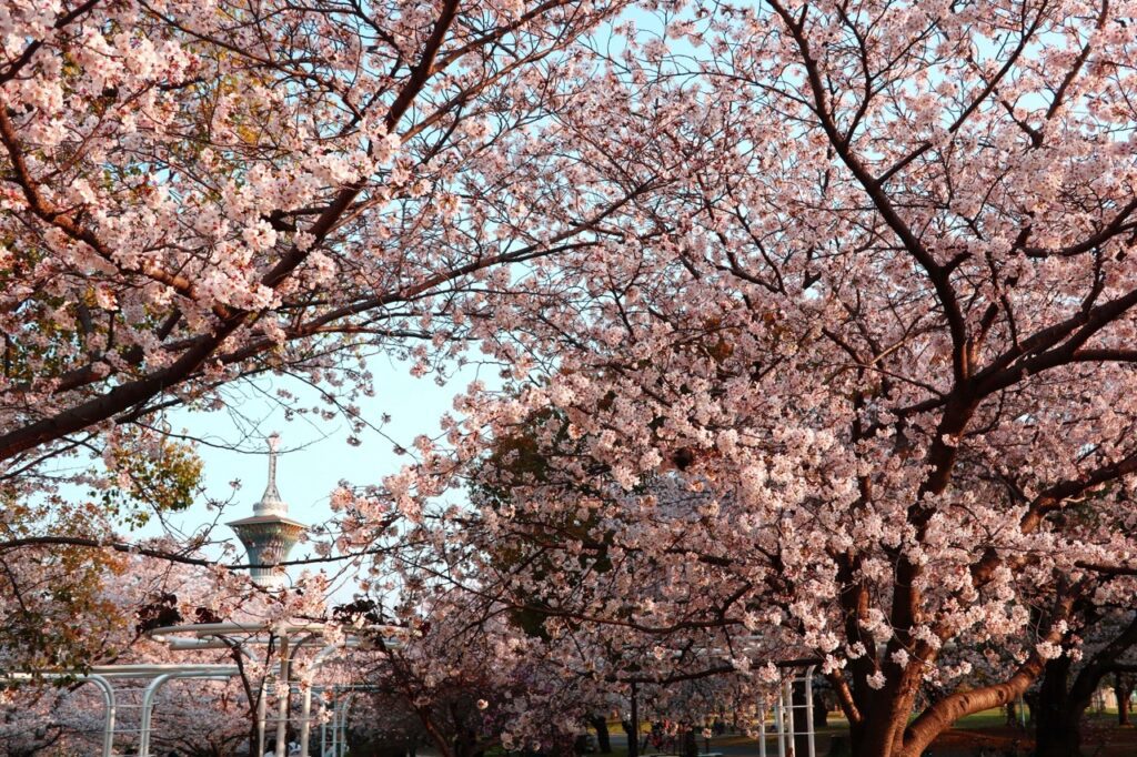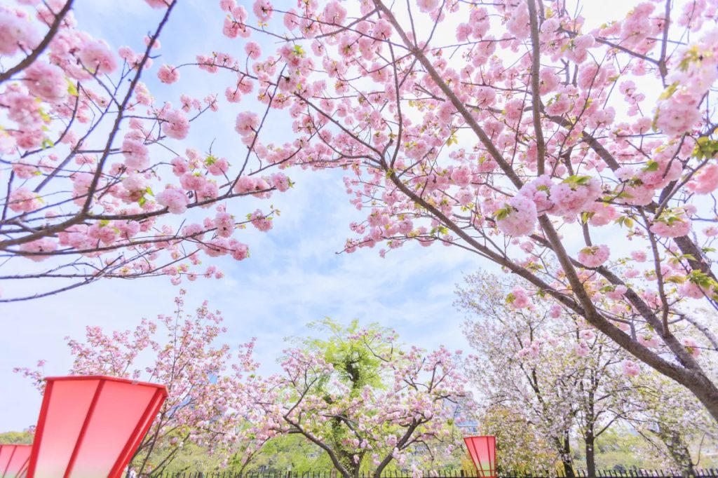 园内有12个品种约5500棵樱花树,规模庞大,3月中旬开始,从彼岸樱、寒绯樱到染井吉野,逐步开放的樱花让整个公园换上粉色的新装,也成了大家打卡拍照,欣赏春日盛景的好去处。2024年3月20日到4月7日,公园会举办名为“SAKURA EXPO 2024”的限定活动。届时公园各处以及园内的自然文化园都以樱花元素装扮一新,十分推荐在这个期间来参观欣赏。