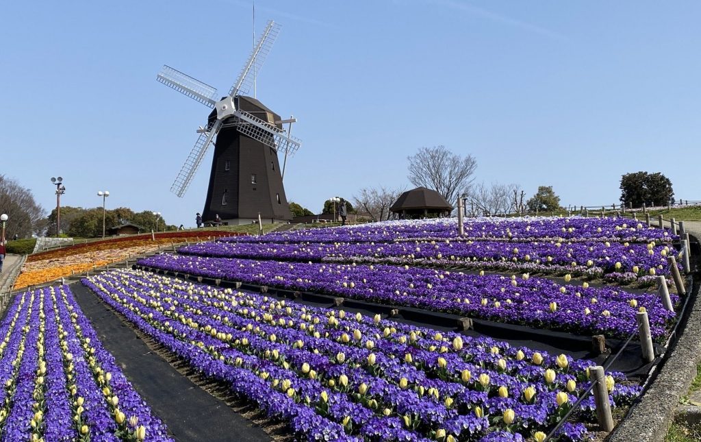 广阔的公园内不仅培育了玫瑰、杏树等多种植物,也少不了樱花树。从2月下旬盛放的河津樱开始,公园的樱花季就正式拉开序幕。随着日子的一天天变暖,日本山樱(オカメ)、阳光樱(yoko)、染井吉野樱花依次绽放,在这里可以看到樱花的时期因此相对较长。尤其是染井吉野樱,在园内超过了1100棵,超过了园内总樱花树的一半。樱花绽放之时,粉色的樱花与周边多彩的新绿形成了极具层次感的春日美景,让人简直无法移开眼。