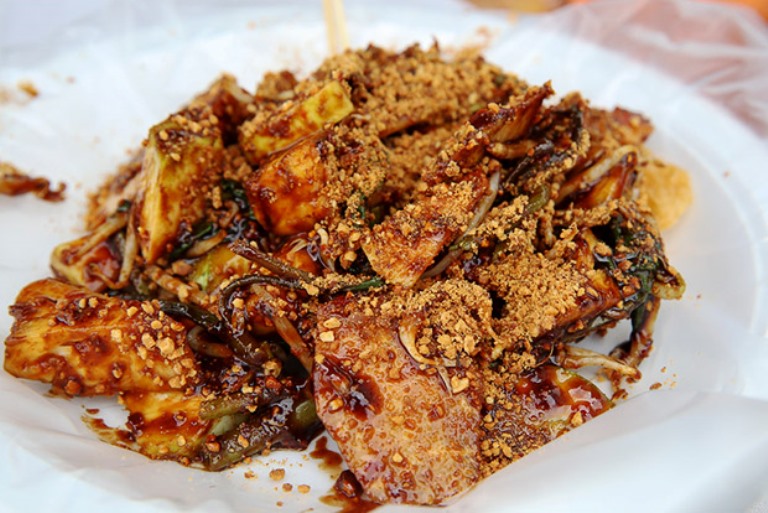 槟城名物,锅气十足。宽米粉在猛火下和鸡蛋、豆芽、虾仁、腊肠炒得热气腾腾。关键是火候和速度,一气呵成才好吃,香味扑鼻,有点像南洋版的炒河粉。
